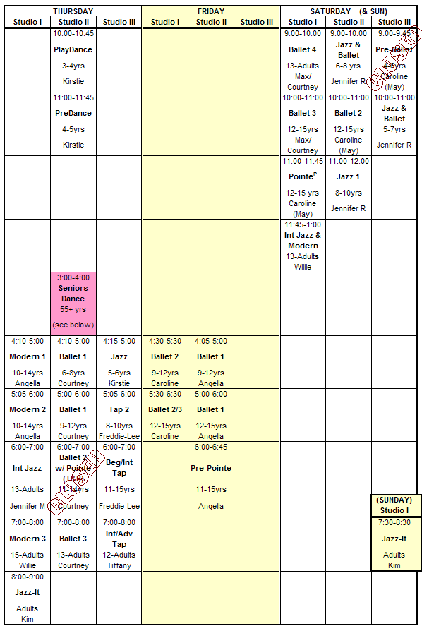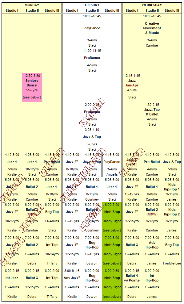 Classes » Fall 2004 / Spring 2005 Class Schedule » Summer 2005 Dance Camps » Summer 2005 Class Schedule » Fall 2005 / Spring 2006 Class Schedule » Registration