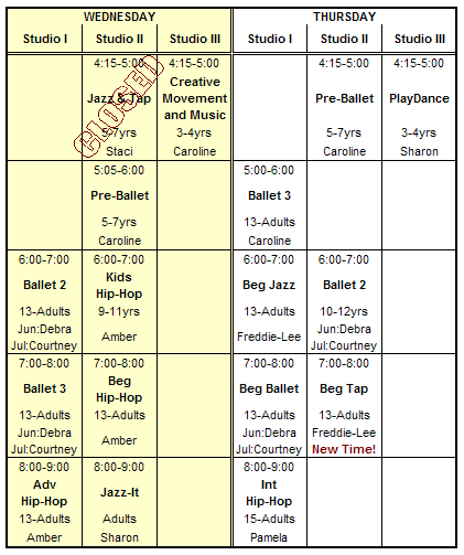 Classes - Summer Dance Camps - Summer Class Schedule - Fall 2004 / Spring 2005 Class Schedule - Registration