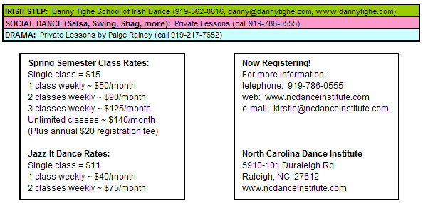 North Carolina Dance Institute 2004 Spring Schedule January 5 - May 29 (20 weeks) Closed Spring Break April 5 - 10