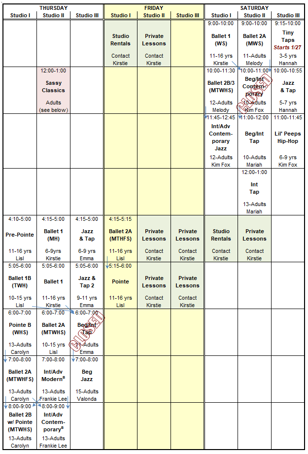 North Carolina Dance Institute 2023-2024 Class Schedule