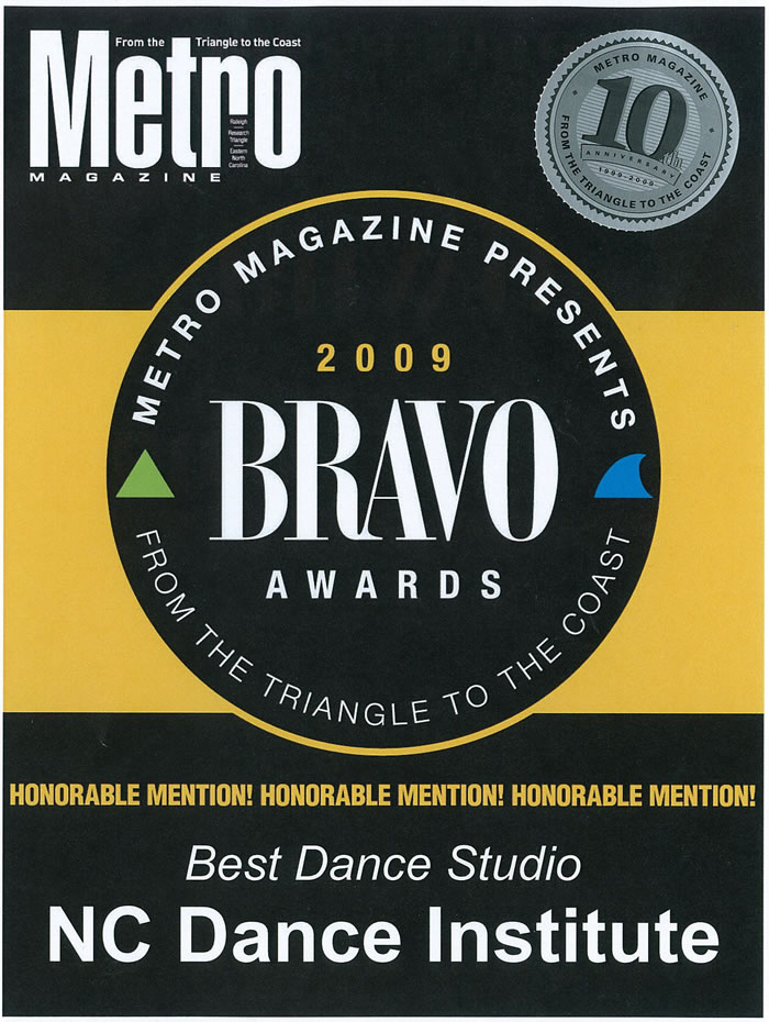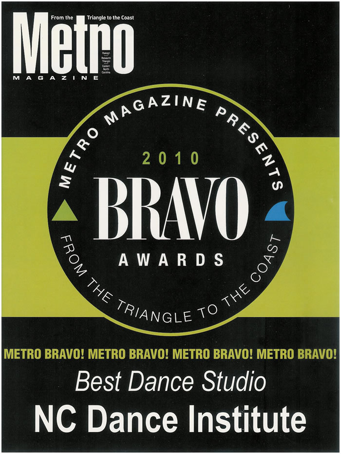In 2010 and 2011, NCDI also won the MetroBravo Award for Best Dance Studio in Metro Magazine's Bravo Awards.